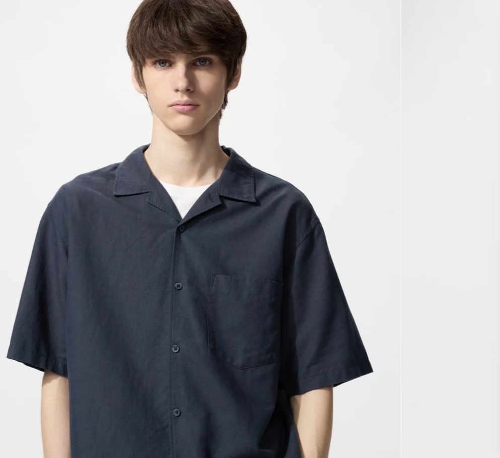 Kemeja Katun Linen Lengan Pendek juga bisa menjadi pilihan menarik untuk Lebaran. Kemeja ini memiliki potongan yang lebih santai dengan gaya relaxed fit, sehingga memberikan tampilan sedikit oversized yang sedang tren.