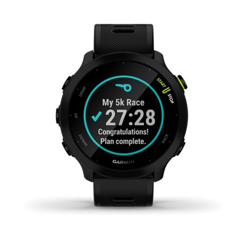 Garmin Forerunner 55: Jam tangan lari yang terjangkau dengan fitur dasar yang lengkap, seperti panduan lari (Garmin Coach) dan prediksi waktu finish.