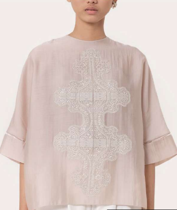 Adalah detail motif dari SAPTO DJOJOKARTIKO yang pertama kali diperkenalkan pada koleksi Spring/Summer 2020 dengan keistimewaan modifikasi dari motif penara yang sudah ada dan dijadikan motif berulang yang digunakan untuk borders dan details pada sulaman.(Foto: Dok. Sapto Djojokartiko)