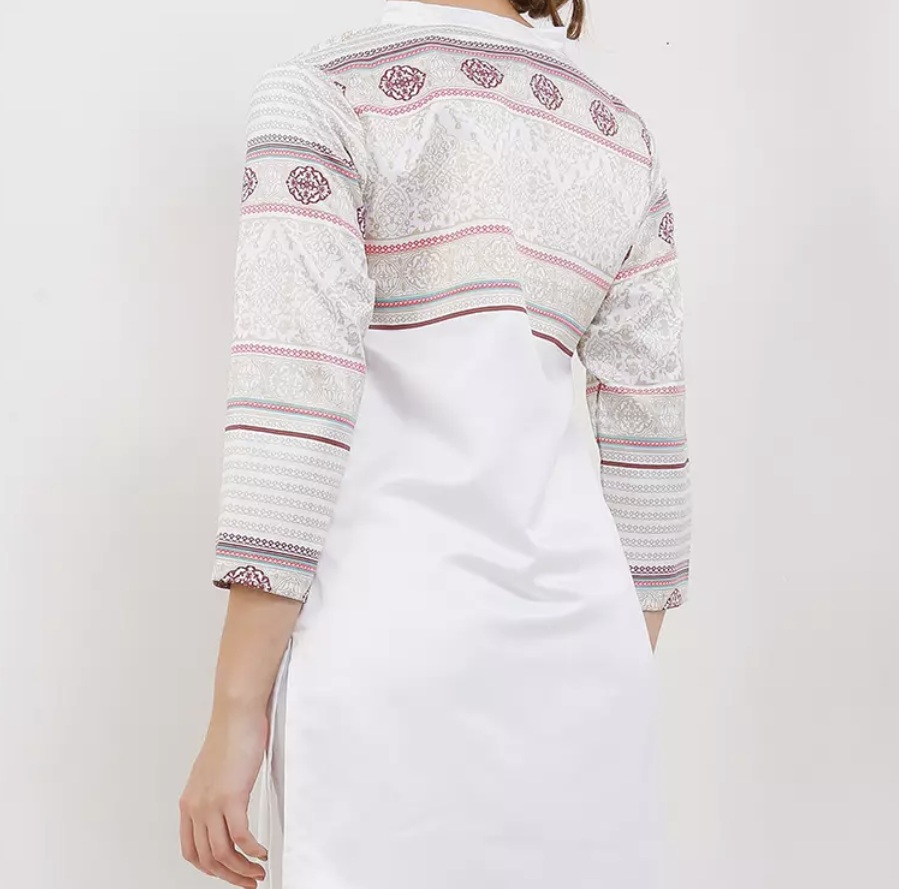Tunik ini dilengkapi kerah berbentuk V dan lengan panjang, yang memberikan tampilan lebih anggun. Motif dengan perpaduan warna yang menarik, terutama dominasi putih, membuat outfit ini tampak classy dan elegan. Raisa Tunik cocok dipakai dalam berbagai kesempatan, baik acara santai maupun semi formal.