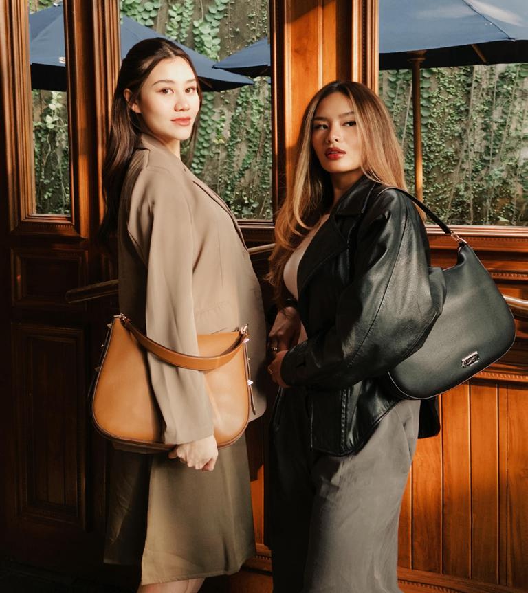 Walaupun mengenakan tas yang sama, yaitu Liv East-West Shoulder, mereka tetap mampu menonjolkan karakter khas masing-masing berkat permainan pola dan fabric yang berbeda, yaitu suede denim dan floral patterns. Now that’s how you do twinning—subtle but totally mesmerizing!