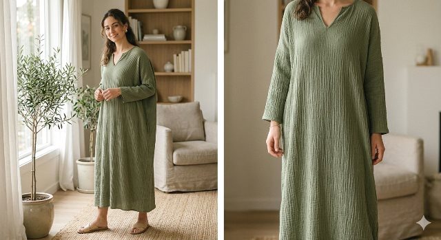 (Kaftan full crinkle minimalis. Foto: Ilustrasi/Dok. AI)