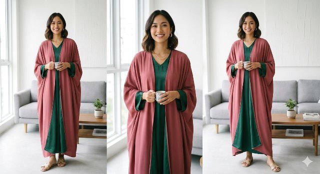 (Kaftan layer dua warna. Foto: Ilustrasi/Dok. AI)