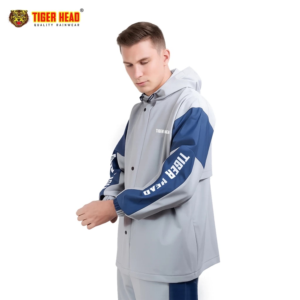 Jas hujan setelan pria premium dari Tiger Head ini dibuat dari bahan PVC tebal yang berkualitas tinggi, dengan furing di dalam untuk kenyamanan ekstra saat dipakai. Fitur anti rembesnya bagus, seperti resleting ganda dan karet di ujung lengan yang mencegah air masuk.