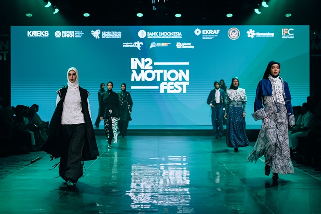Keragaman wastra dari seluruh Indonesia, di antaranya batik, songket, tenun ikat, tenun ATBM, lurik, tapis, sasirangan, jumputan, bordir, rajutan, dan eco print dalam berbagai gaya modest fashion karya desainer anggota Industri Kreatif Syariah (IKRA) Indonesia, brand, UMKM, dan siswa sekolah mode kembali menjadi sorotan dalam rangkaian fashion show maupun trade show (pameran dagang berstandar internasional) di IN2MOTIONFEST 2025.