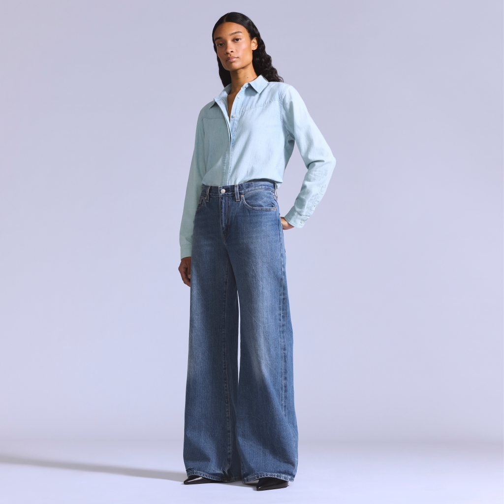 Sementara itu, lini wanita menonjolkan tailoring denim yang anggun dan craftsmanship feminin yang menghormati warisan seni denim. Mariner Peacoat menjadi interpretasi modern dari jaket klasik dengan potongan cropped yang artistik dan lapisan dalam satin yang dapat dilepas serta dikenakan terpisah.