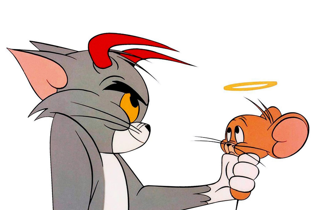 Serial kartun Tom and Jerry berkisah tentang kucing dan tikus dalam satu momen tidak pernah akur. Dalam versi animasi, mereka menghibur menggunakan olah tubuh tanpa dialog percakapan. Komedi yang ditawarkan pun berupa slapstick.