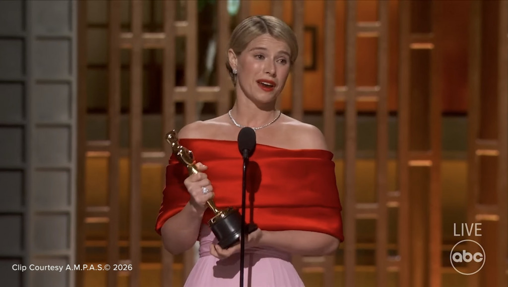 "Terima kasih banyak. Ini benar-benar sesuatu yang luar biasa. Terima kasih kepada para perempuan hebat yang berdiri bersama saya di sini," ungkap Jessie Buckley yang dikutip dari kanal YouTube ABC News pada Senin, 16 Maret 2026.