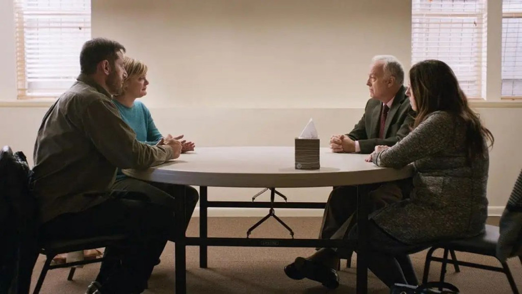 Enam tahun setelah tragedi itu, kedua pasangan setuju untuk bertemu dan berbicara. Pertemuan ini terasa berat mengingat tragedi penembakan di sekolah dulu.