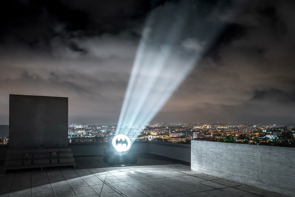 Lampu sorot modifikasi itu biasa disorotkan ke langit atas kota Gotham dengan simbol kelelawar ikonik besar, dan menandakan adanya kejahatan yang terjadi di Kota Gotham.