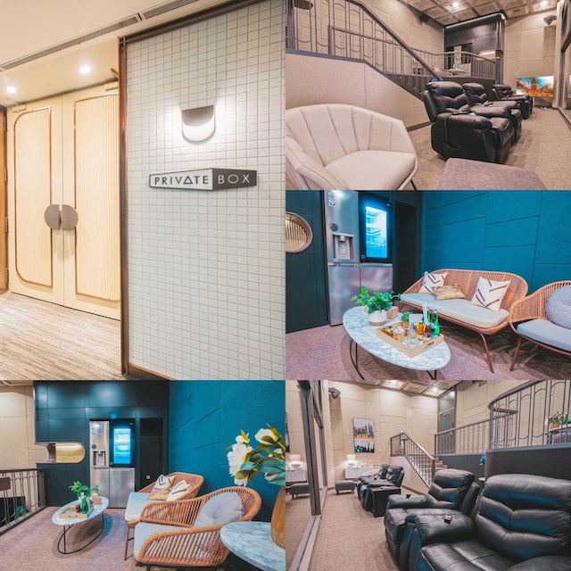 Fasilitas lain yang tersedia di Private Box yaitu Free Wifi, Reclining leather Sofa, Mini Living Room, Blanket, Slippers, Smart Fridge, Smart TV, Clothes Styler, Adjustable lighting, temperature and window roller shade, Room Air, Purifyer, Welcome drink & towel, Complimentary snack, Variety of F&B Menus.