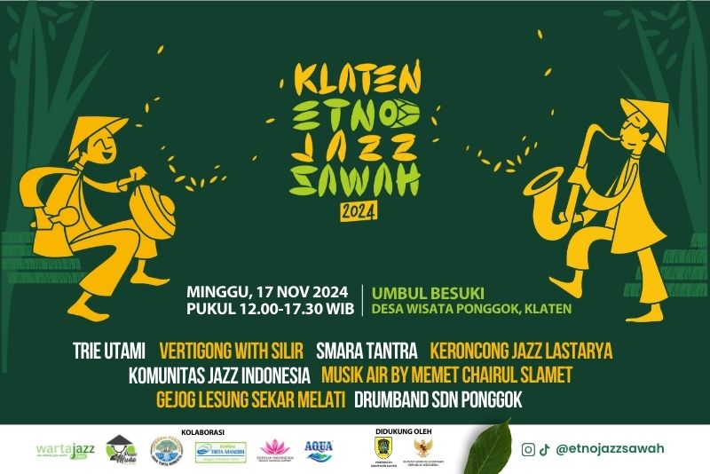 Klaten Etno Jazz Sawah ini merupakan hasil kolaborasi dari Warta Jazz, Komunitas Petani Muda Klaten, Desa Wista Ponggok, Seroja Indonesia, dan Aqua. Turut didukung pula oleh Pemerintah Kabupaten Klaten, Lestarilah Indonesia, dan Grand Tjokro Hotel.