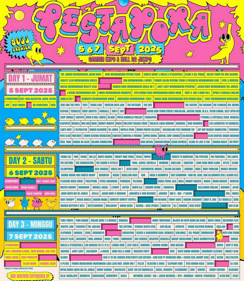 Pestapora sendiri bakal digelar di Gambir Expo dan JIExpo, Kemayoran, pada 5, 6, 7 September 2025. Lebih dari 230 nama akan tampil dalam festival yang digelar oleh BOSS Creator ini.