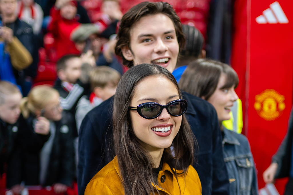 Olivia Rodrigo yang dikenal lewat tembang hitsnya seperti "good 4 u", "traitor", dan "deja vu", tampil menawan dengan mengenakan rok hitam bermotif polkadot, mantel berwarna orange dan kacamata hitam. Saat pertandingan, ia terlihat duduk di belakang mantan pelatih Man. United, Alex Ferguson.