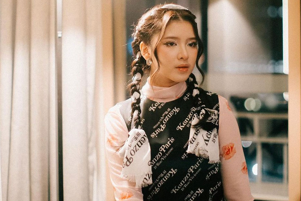 Ia, tampil cantik dengan menggunakan wig rambut berwarna blonde yang dipadukan dengan dress berwarna pink. Sedangkan, untuk latar suasana acara didesain di atas kapal dan didukung oleh properti serupa Bikini Bottom.