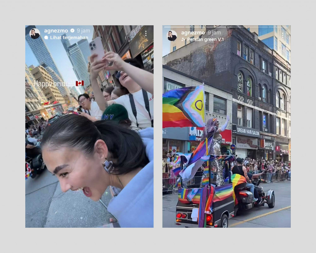 Lewat unggahan Instagram Stories terbaru yang diunggah pada Senin, 30 Juni 2025 dini hari WIB, Agnez Mo tampak antusias menyaksikan kemeriahan parade yang dipenuhi simbol-simbol dukungan terhadap komunitas 2SLGBTQI+.