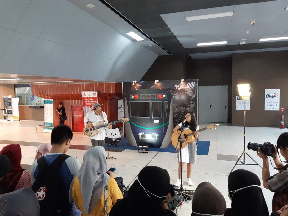 "Ini pertama kali kami tampil di stasiun MRT. Mari kita bernyanyi," sambung Endah.