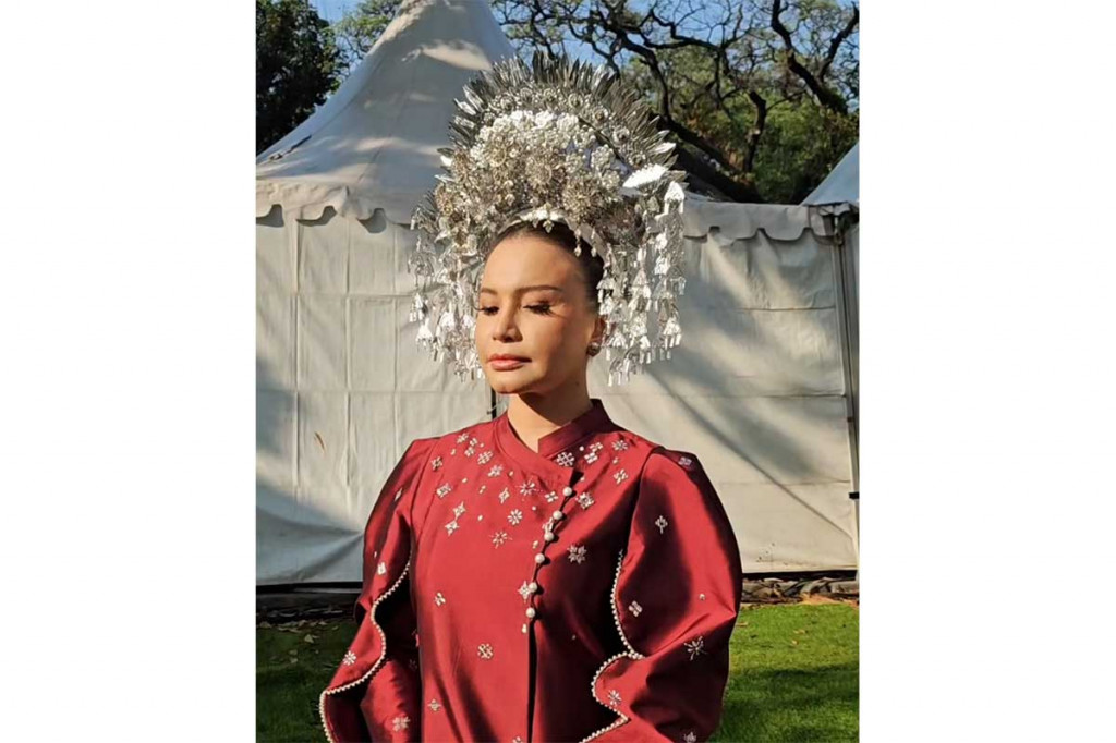 Diva pop Indonesia itu tampil anggun dengan busana adat merah maroon dan hiasan kepala perak, menyanyikan karya Ismail Marzuki yang diaransemen oleh Anto Hoed.
