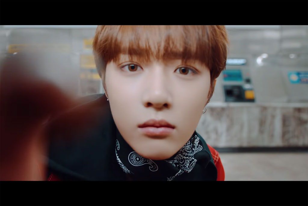 Beomgyu diperkenalkan dalam balutan busana merah. Dia pun tampak lincah dengan mengendarai sepeda.