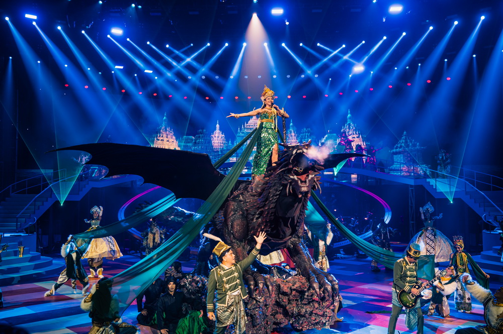 Puncak penampilan Yura hadir ketika ia membawakan lagu “Mahadewi” yang merepresentasikan Yogyakarta. Bersama grup band PADI Reborn, Yura tampil dengan gaun hijau mewah bertali panjang. Adegan menjadi spektakuler saat ia terbang menggunakan sling di atas naga raksasa, menciptakan momen teatrikal yang membuat seluruh arena berdecak kagum.