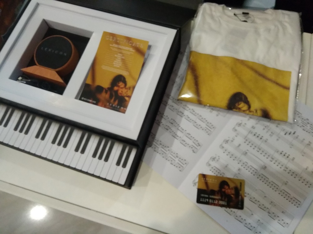 Box Set berisikan benda kolektif sebagai memorabilia di antaranya speaker, partitur piano, T-Shirt, postcard, member card Lexicon (e-money), guarantee card, dan sertifikat. Box Set juga berisikan legalitas pembeli aslinya.