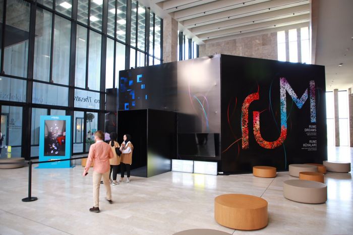 "Rumi Dreams" karya Refik Anadol adalah pengalaman digital yang pertama kali di dunia. Proyek multisensor ini membenamkan pengunjung ke dalam karya seni dan pandangan dunia Rumi, memperkenalkan mereka yang tidak terbiasa dengan ajaran penyair dan mistik pada tradisi transendental Sufi.