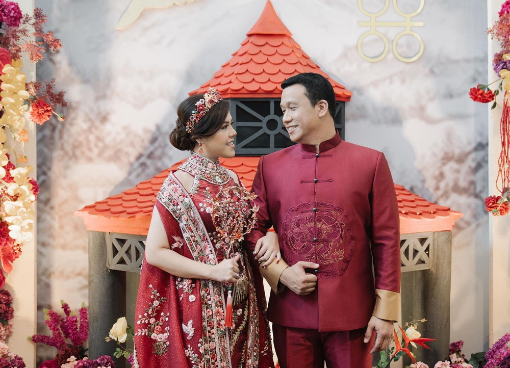 Tina dan Daniel melakukan sangjit atau ritual pertunangan dalam tradisi Tionghoa-Indonesia. Tina dan Daniel kompak memakai pakaian bernuansa merah.