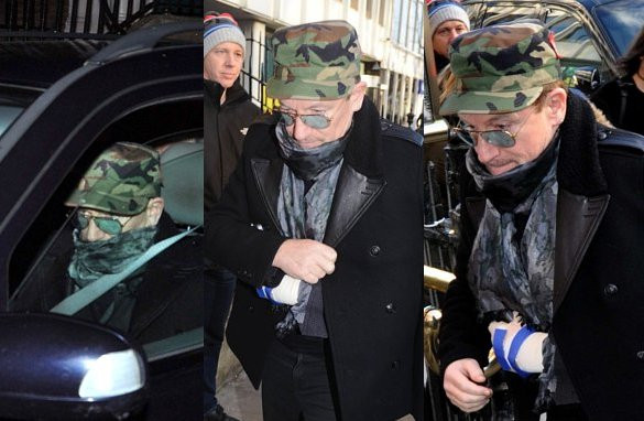 Rocker asal Irlandia itu terlihat datang ke restoran The Cliff Townhouse di Dublin, untuk merayakan Natal bersama teman-temannya pada Rabu, 24 Desember 2014. Ini merupakan penampilan perdana Bono di muka umum dengan tangan dibebat perban.