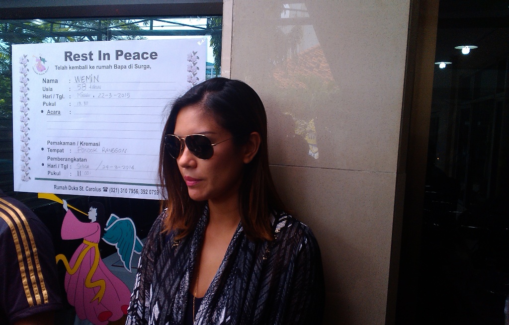 Aline yang kini berstatus mantan menantu Frans, turut hadir memberikan penghormatan terakhir ke rumah duka St Carolus, Salemba, Jakarta Pusat.