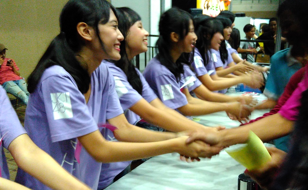 "Melalui acara handshake ini kita jadi bisa ngobrol lebih dekat lagi dengan para member, soalnya selama ini kalo di teater kan cuma bisa lihat bentar aja," ujar Dominique, seorang fans JKT48 saat diwawancara di Ecovention Ecopark, Ancol, Jakarta, Sabtu (31/10/2015).