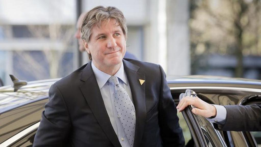 Stasiun televisi lokal memperlihatkan Boudou, dengan muka muram dan mengenakan kaus polos hitam, berdiri diapit dua petugas keamanan.