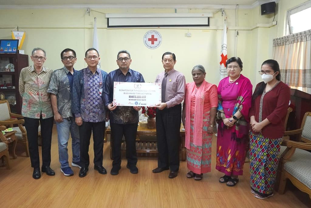 Prof. Dr. Myo Nyunt menyampaikan rasa terima kasihnya atas donasi, yang akan membantu MRCS dalam memberikan bantuan dan pemulihan yang sangat dibutuhkan masyarakat terdampak bencana.