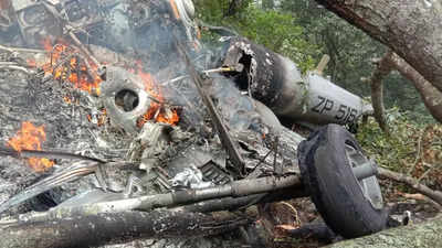 Video yang disiarkan di saluran berita India menunjukkan bangkai helikopter yang terbakar di lokasi kecelakaan di kawasan hutan lebat dekat kampus di distrik Nilgiris.