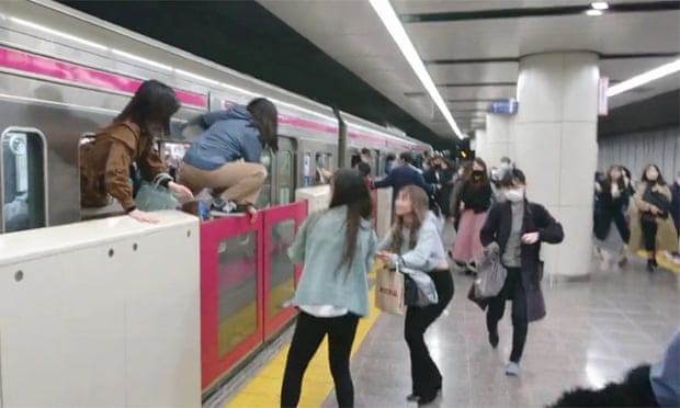 Video lain menunjukkan penumpang bergegas keluar dari jendela kereta dan ke peron tempat kereta berhenti darurat. Pelaku diketahui berusia 24 tahun.