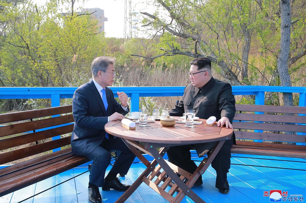 Dalam pertemuan perdana Moon dan Kim pada 2018, keduanya menandatangani sebuah deklarasi mengenai "denuklirisasi menyeluruh di Semenanjung Korea" dan menghentikan "segala bentuk aksi bermusuhan."