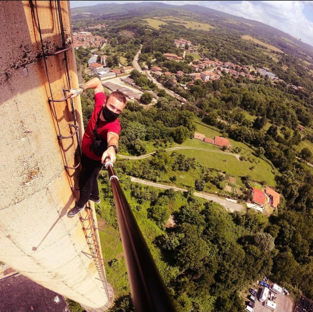 Dalam foto yang diunggah di Instagram pada 16 Juli, Lucidi berswafoto sambil bergelantungan di tangga atas sebuah gedung di Gabrovro, Bulgaria. Dia menulis keterangan di gambar, "Hidup ini terlalu singkat untuk mengejar unicorn."