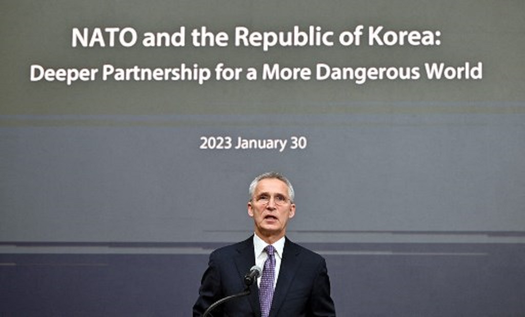 Dalam pertemuan dengan pejabat senior Korea Selatan, Stoltenberg berpendapat bahwa kejadian di Eropa dan Amerika Utara saling berhubungan dengan kawasan lain, dan NATO ingin membantu mengelola ancaman global dengan meningkatkan kemitraan di Asia.
