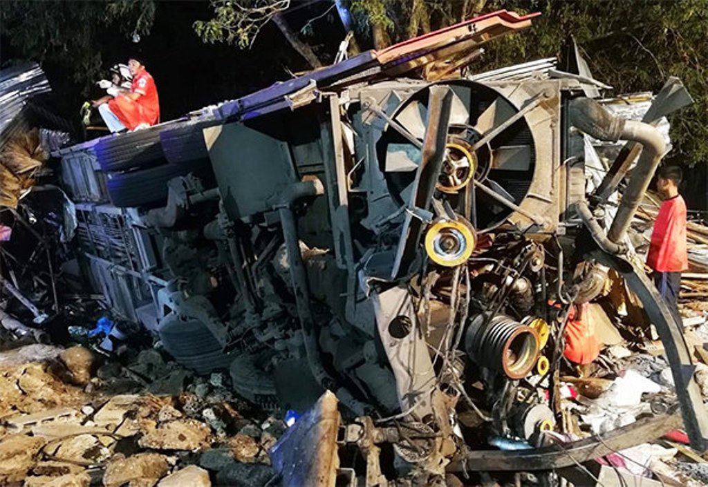 Foto-foto di media lokal menunjukkan bus tersebut berada dalam posisi miring dan para penyelamat sedang menyisir lokasi untuk mencari korban lain.