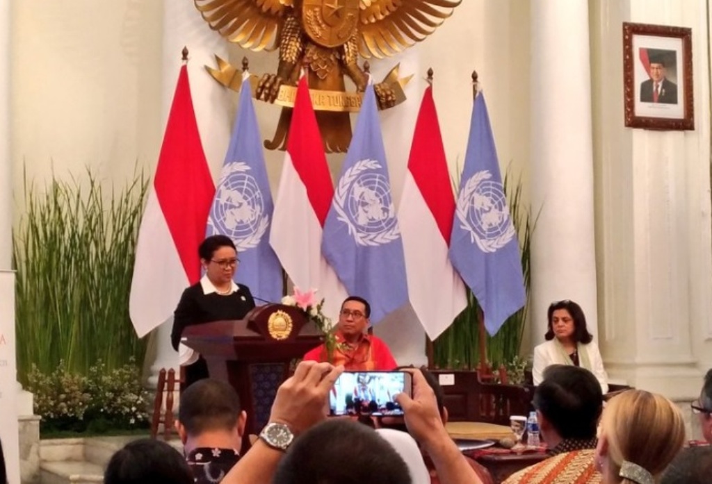 Saat ini, tutur Retno, Indonesia menjadi negara yang masuk dalam 10 teratas kontribusi di operasi misi perdamaian PBB. "2.800 personel melayani sembilan negara, termasuk 64 di antaranya wanita. Salah satunya, Ratih Pusparini," seru Retno.