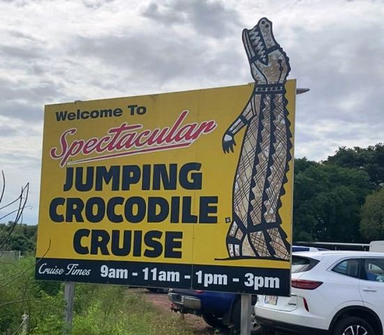Destinasi pertama adalah Jumping Crocodile Tour di Adelaide River, sekitar satu jam perjalanan dari pusat kota Darwin menuju Middle Point, di kawasan Beatrice Hill, tepat di 2915 Arnhem Highway.