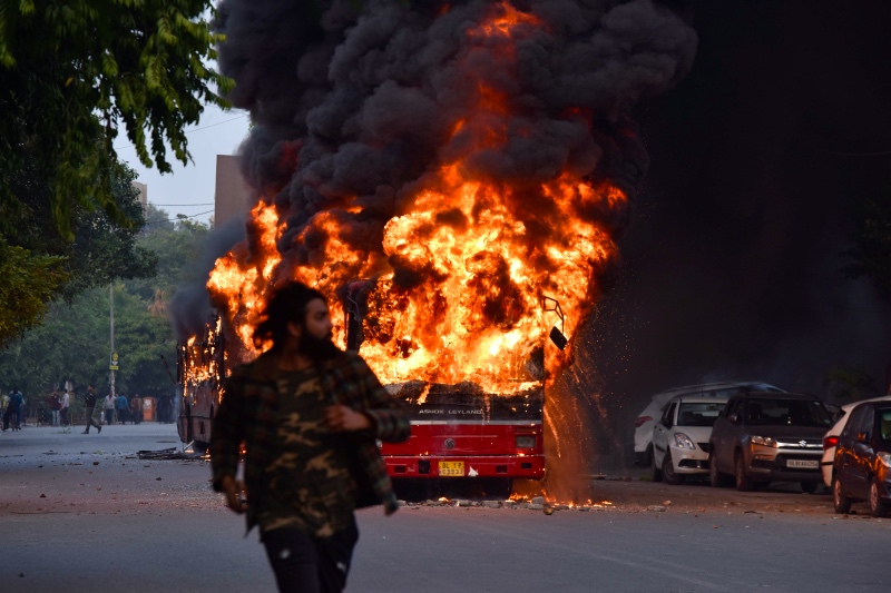 Pada Minggu malam di New Delhi, polisi dengan tongkat menembakkan gas air mata dan menuduh mahasiswa memprotes sebelum menyerbu sebuah universitas.
