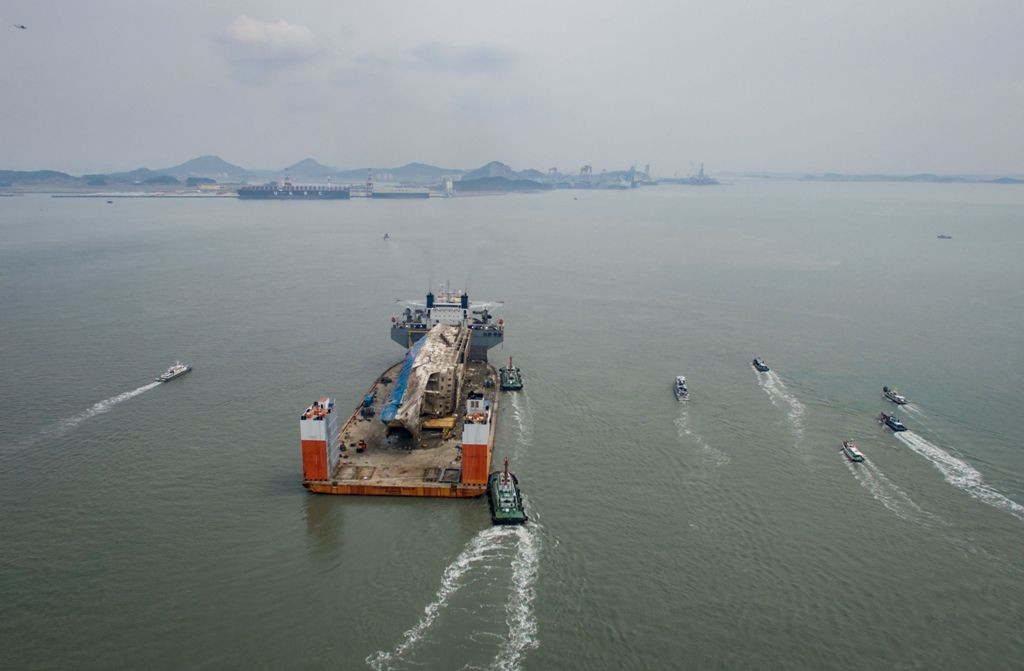 Enam hari kemudian, bangkai kapal feri Sewol yang berhasil diangkat tiba di Pelabuhan Mokpo. Pejabat setempat mengatakan, butuh waktu hingga delapan hari untuk membawa bangkai kapal Sewol sejak diangkat dari dasar laut hingga ke Pelabuhan Mokpo.