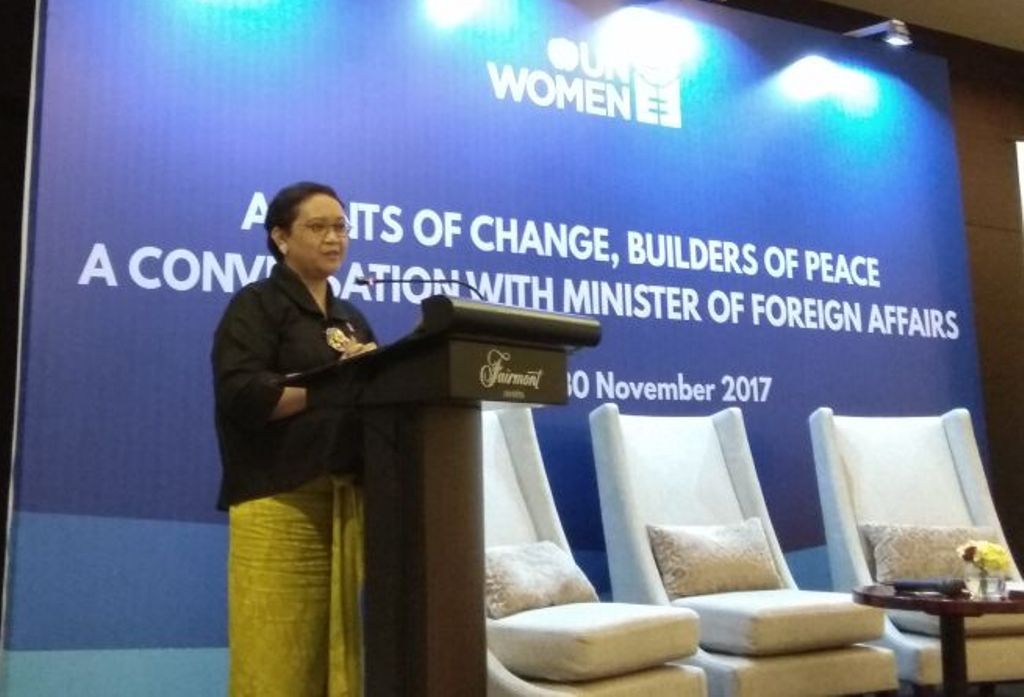 "Palestina, Perairan Sulu, Marawi, Rakhine, bahkan Afghanistan menjadi perhatian Indonesia mengenai perdamaian. Dan kita sudah memperlihatkan cara kerja kita di sana," ujar Menlu Retno dalam acara 'UN Woman: Agent of Change, Builder of Peace with Minister of Foreign Affairs', di Hotel Fairmont, Jakarta, Kamis, 30 November 2017.