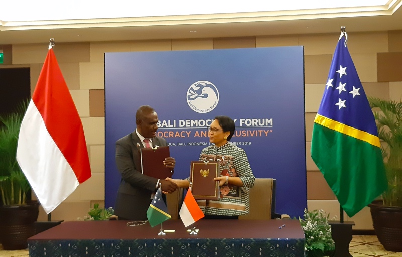 "Baru saja kita menandatangani dua nota kesepahaman (MoU), salah satunya mengenai hibah untuk pembangunan stadion futsal di Solomon Island dalam rangka persiapan untuk tuan rumah Pacific Games 2023," kata Retno usai melakukan bilateral dengan Menlu Kepulauan Solomon Jeremiah Manele di Bali, Kamis 5 Desember 2019.