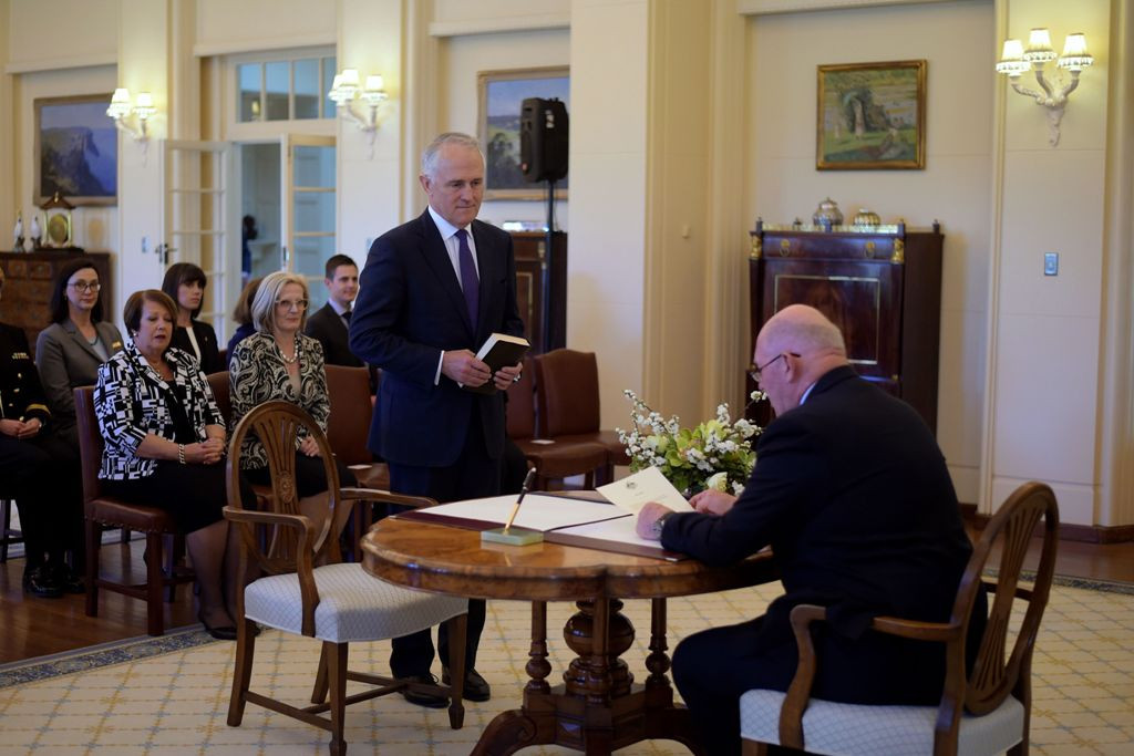 Turnbull dilantik oleh Gubernur Jenderal Sir Peter Cosgrove, sebagai perwakilan dari Ratu Elizabeth II. Mantan bankir berusia 60 tahun itu dipenuhi rasa optimisme saat memimpin upacara pelantikannya.
