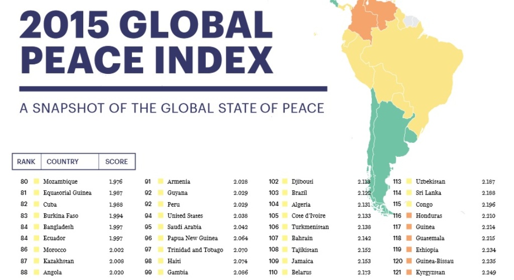 "AS dianggap tidak aman karena pengaruh militerisasi, pembunuhan dan ketakutan warga atas kekerasan. Namun posisinya meningkat dibandingkan tahun lalu yang berada di posisi 101," sebut CNN, Jumat (26/6/2015).
