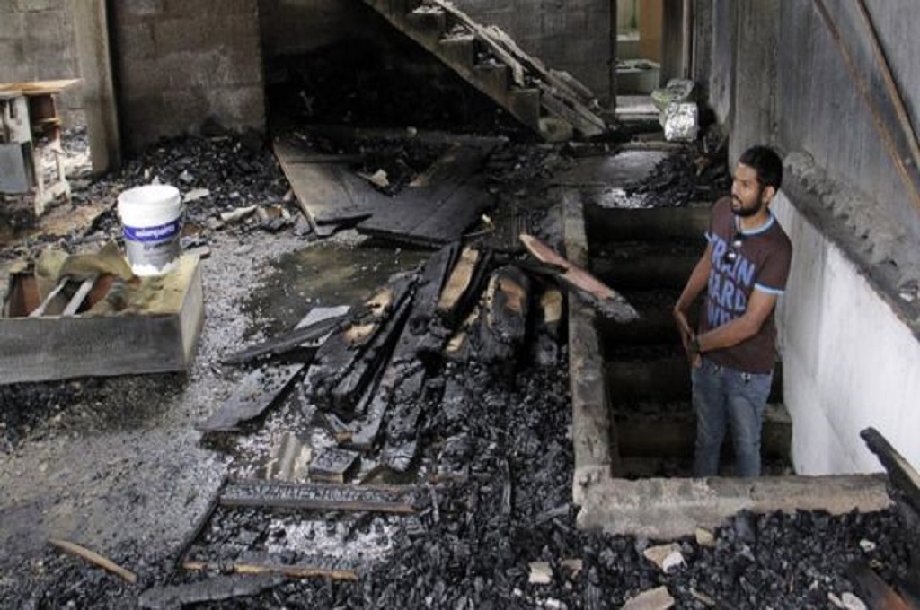 Ketegangan meningkat di Sri Lanka pada 6 Maret, saat jasad pria Muslim terlihat ditarik dari sebuah bangunan yang terbakar di Sri Lanka.