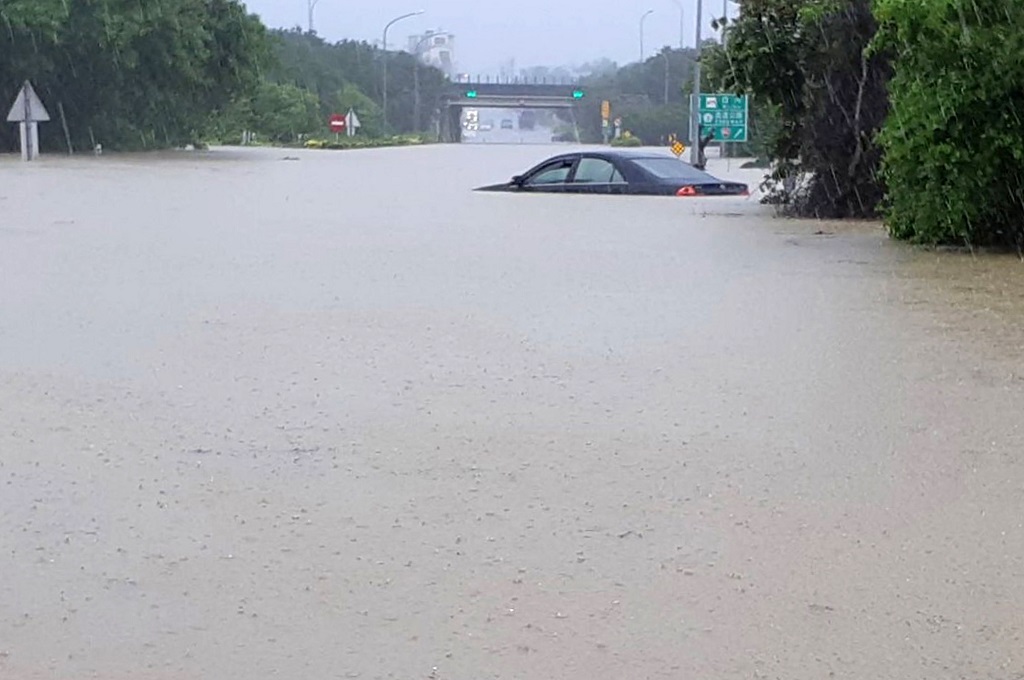 Meski badai tropis sudah menjauh dari Taiwan, masih banyak daerah yang masih tergenang air.