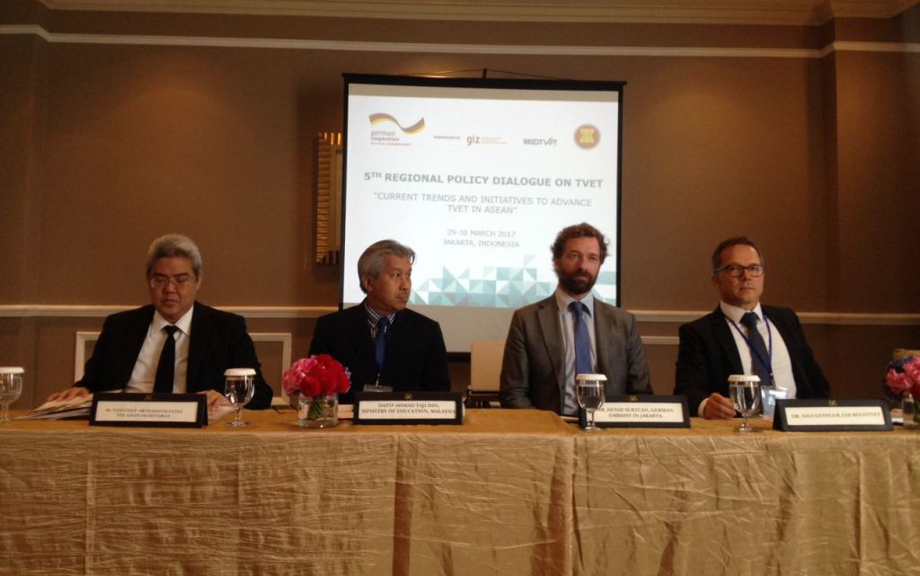 "Forum tingkat tinggi yang diadakan secara reguler oleh pembuat kebijakan dan pemangku kepentingan dari ASEAN ini menawarkan kesempatan untuk dialog dan pertukaran tren-tren TVET dan tantangannya," tutur Nils Geissler, Direktur Program RECOTVET, di Hotel Gran Mahakam, Jakarta, Rabu 29 Maret 2017.