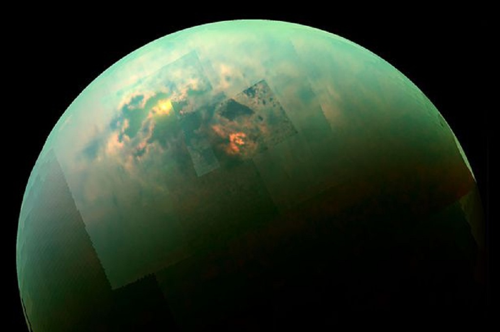 Seperti dikutip Mirror.co.uk, belum lama ini, foto NASA memperlihatkan refleksi sinar matahari di permukaan Titan. Permukaan Titan sebagian besar terdiri dari air, es dan bebatuan, sementara atmosfernya didominasi nitrogen.